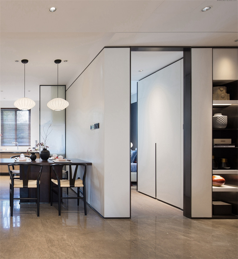 欲以本套新中式设计,传达“采菊东篱下,悠然见南山”的高远意境,住户在品味隐居禅意的同时,便懂得陶渊明这位朴素“大富翁”的生活哲学。