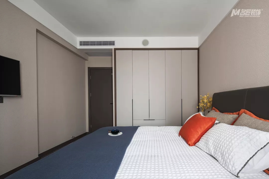 衣柜与墙面调一致,维持了空间良好的色彩氛围,不会因为色彩的突然变化,影响视觉美感。