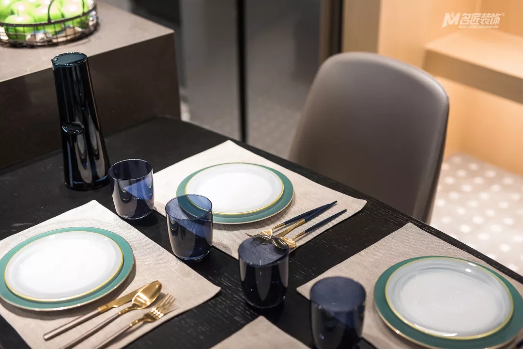 餐桌的餐具彰显着业主的独特品味,让自己喜欢的样式才是生活本来应该有的舒适模样。