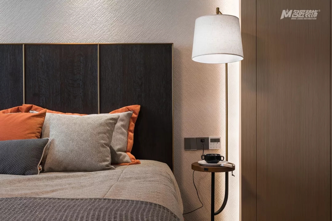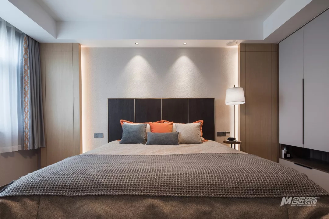 宽敞素雅的主卧,静谧安详,全屋没有过为复杂的陈设,没有耀眼的色泽,一切都显得那么平和,舒适,让人心神宁静,更好的放松。